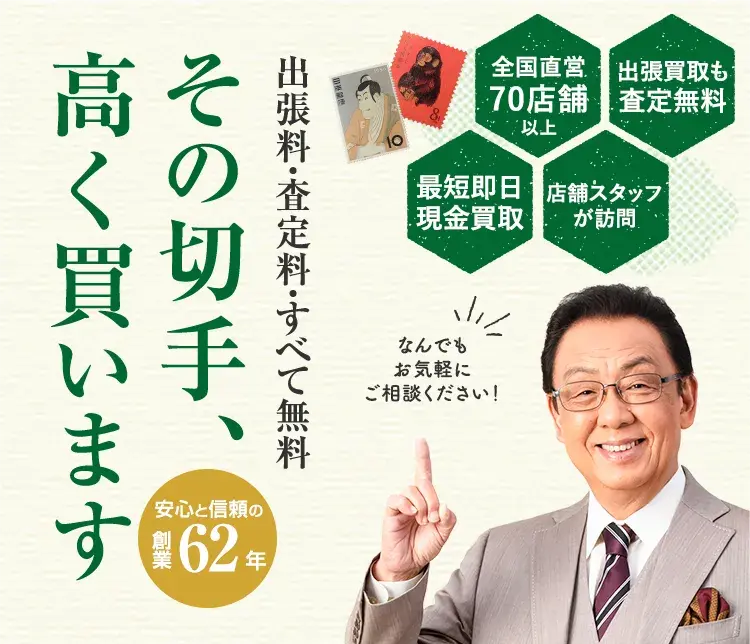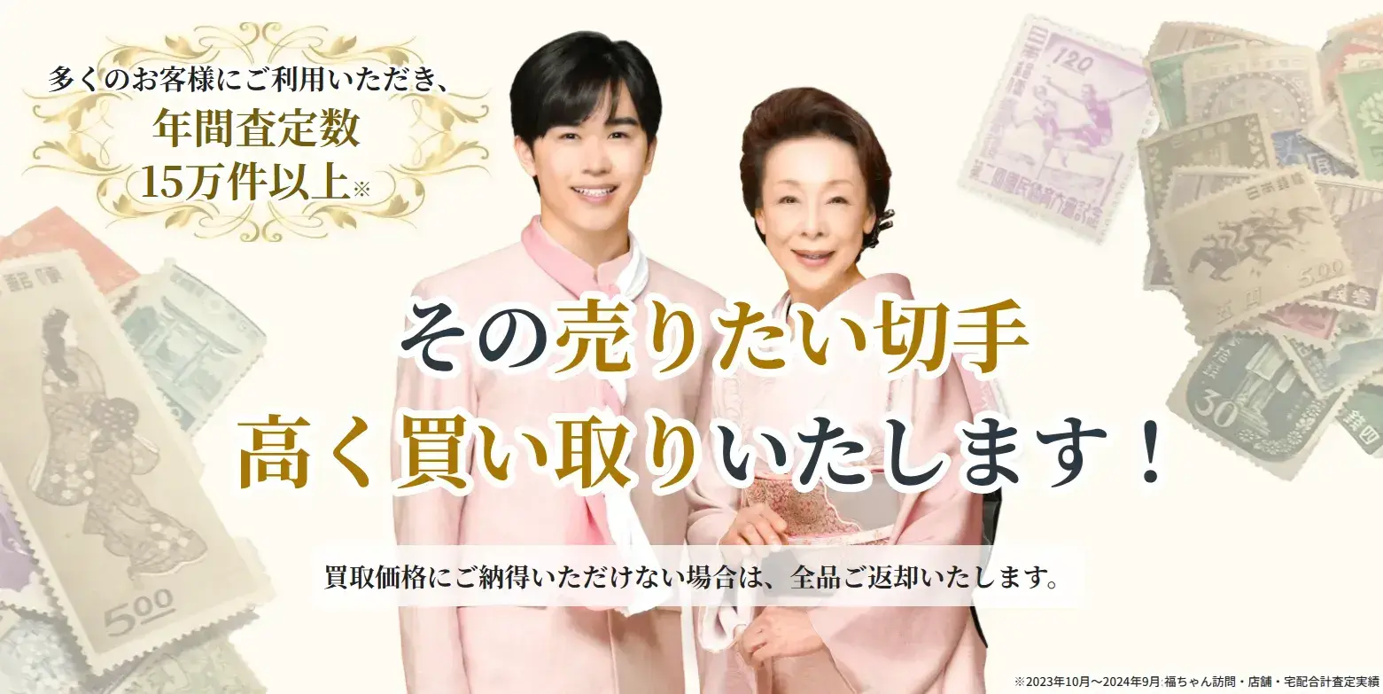 福ちゃんは、累計買取実績800万点を突破する人気の買取サービスで、切手買取業者の中でもトップクラスの買取価格を誇っています。 高額買取が可能な理由は、査定員さんのレベルの高さにあります。知識豊富な査定員さんが揃っているので、日本切手はもちろん、中国切手などの海外切手の買取にも強く、大切な切手の価値をしっかりと見定めてもらうことができます。